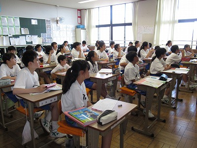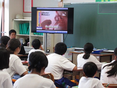 授業の後半は、生命誕生までの感動を映像で追いました。その後、生命を生み出す体に成長する中学生の時期に、どのようなことに心掛けて生活を送ればよいかを考えました。