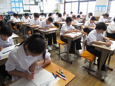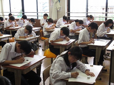 朝から雨が降っています。気温がいつもより少し低い感じです。期末テスト2日目ですが、昨日よりはテストを受けやすい環境でしょうか。皆、真剣にテストに臨んでいます。