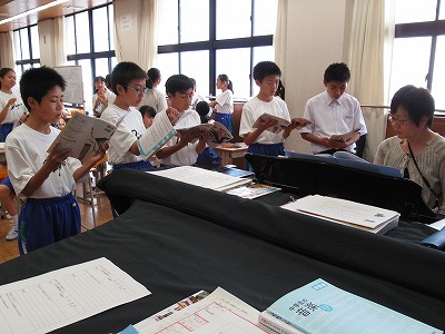 今日は歌のテストでした。グループで「We'll Find The Way」か「主人は冷たい土の中に」のどちらかの曲を選び、斉唱か合唱かで歌います。グループで相談をしたり練習をしたりしてテストに臨みました。皆、とても上手です。
