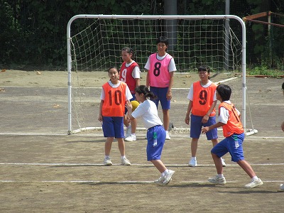 ハンドボールに入りました。とても暑い中ですが、チームで声を掛け合いながらボールを運んでいました。