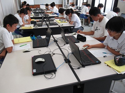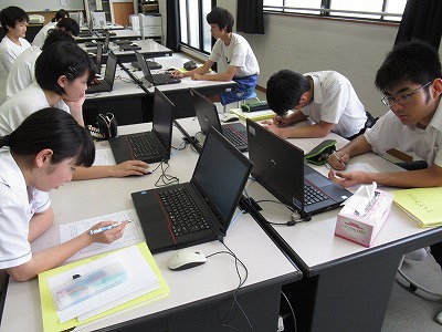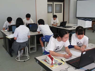 三行詩に入りました。テーマは「我が家のリール・家族のきずな・命の大切さ」です。テーマを絞りながら、パソコン室で題材集めをしたり、描きたいイメージを広げたりしました。