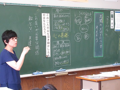 今日は第7回道徳、教材は「ライバル」、二人の登場人物の悩みや心の葛藤を通して、友情や信頼について考えました。