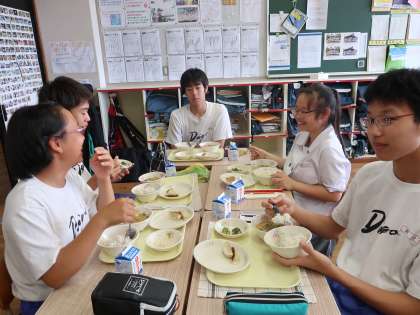 ・中華丼、野菜がたくさんでおいしかったです。あたたかい給食ありがとうございます。