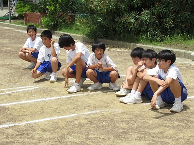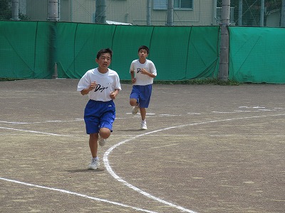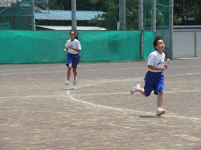 今日は、新体力テストの持久走に挑戦です。男子は1500m、女子は800mです。男子は外側を女子は内側のコースを同時に走ります。前後半に分かれ、走っていないときには、ペアの生徒のタイムを記録したり、ペースを知らせたり、声援を送ったりしていました。