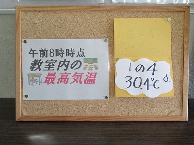 朝から気温が高く、「厳重警戒」です。こまめに水分補給をしていきましょう。