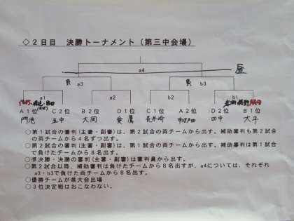 女子バレーボール部、今日は決勝トーナメントの試合でした。対戦相手は強豪の門池中、セットカウント0−2で敗れてしまいましたが、心を一つに最後まで戦い抜きました。