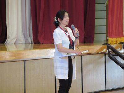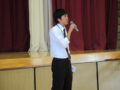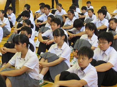 終業式後、夏休みの過ごし方の指導を生徒指導主事の酒井先生から、熱中症対策のお話を養護教諭の土屋先生からいただきました。