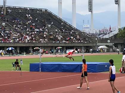 女子走高跳の様子です。小林さんはすでに全中標準記録をクリアしていますが、記録更新目指して頑張っています。