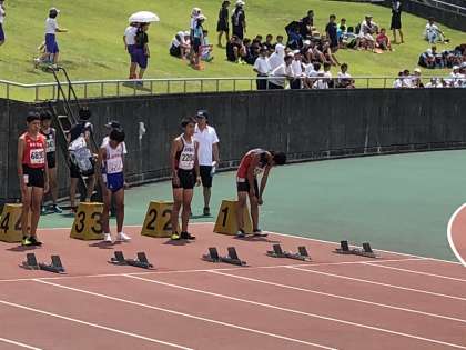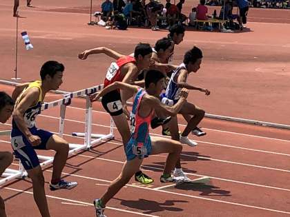 男子共通110m Hの様子です。猛暑の中での競技大会でしたが、最後の力を出しきり頑張りました。