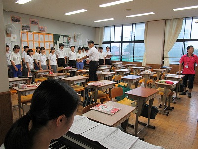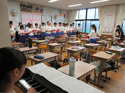 朝の会 3年生合唱練習の様子です。各クラス朝から声を響かせています。