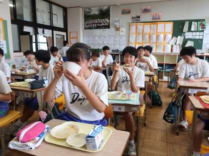 3年4組、3年5組の給食時間です。