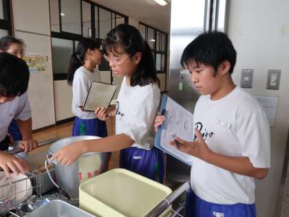 1枚目は、完食片付け調べをしている1年生給食委員です。