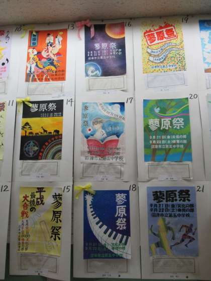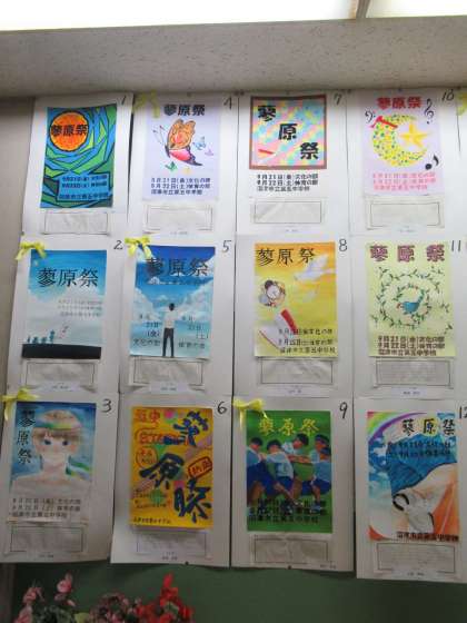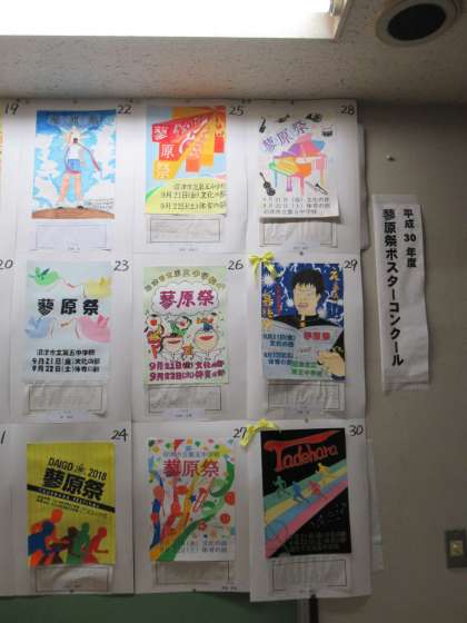 本日放課後、ポスター展の入賞者の作品にリボンがつけられました。