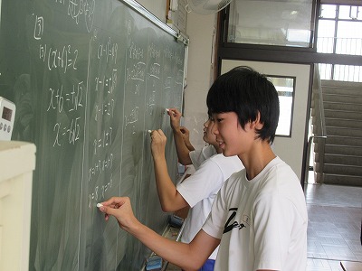 教科書 2次方程式の「確かめよう」の問題に挑戦しました。参観したときには、黒板に生徒が自分の考えを書いているところでした。その後、この考えを基に全体で確認をしていきました。