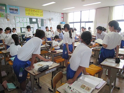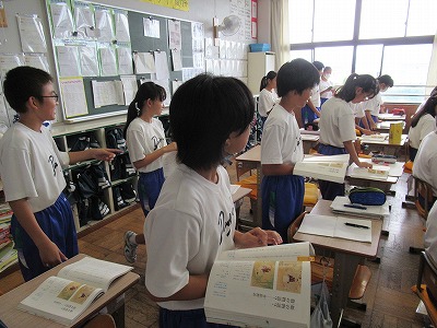 古典作品「竹取物語」に入っています。冒頭の部分の音読をしているところです。