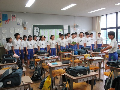 今日は雨天でグラウンドが使えないため、帰りの会の練習は、どの学年、どのクラスも合唱練習に励んでいました。3年生の練習の様子をお見せいたします。