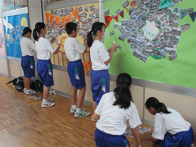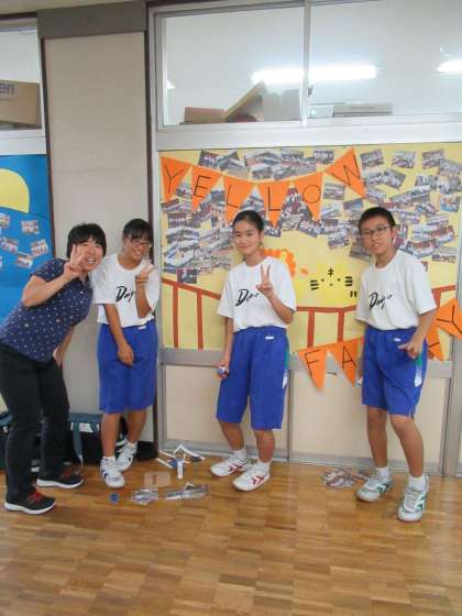 緑ファミリーと黄色ファミリーが掲示物を進めていました。