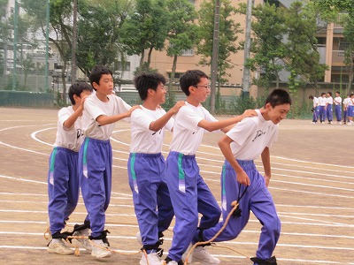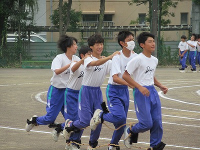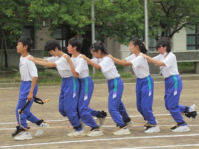 2年生はムカデの練習です。各クラス入り交じっていて……、どこでどのクラスが練習しているのかよく分かりませんが、小ムカデを中心に皆よく頑張っています。