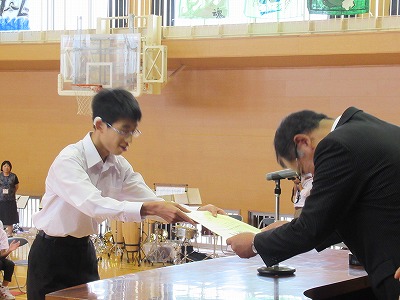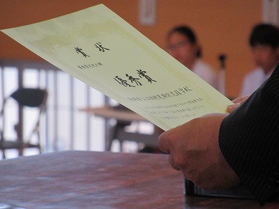 写真は、聴覚特別支援学校の見事な演奏への表彰です。