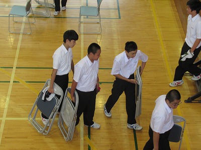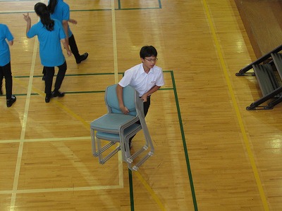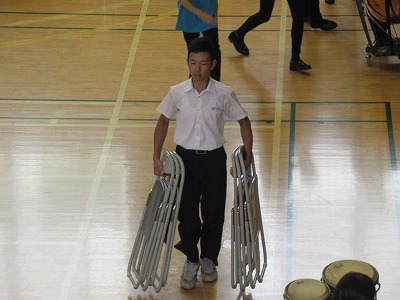 大道具・小道具の生徒が椅子をすばやく片付けます。