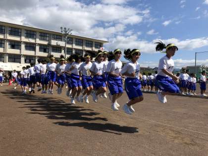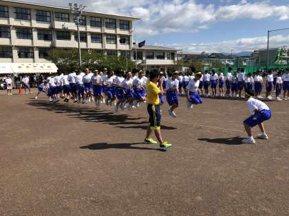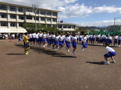 プログラム4 「一致団結 Let's Jump!」(1年学年種目)です。