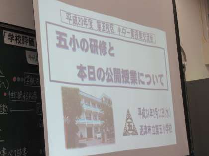 【第五中】第五校区小中一貫授業交流研修会(2/13)
