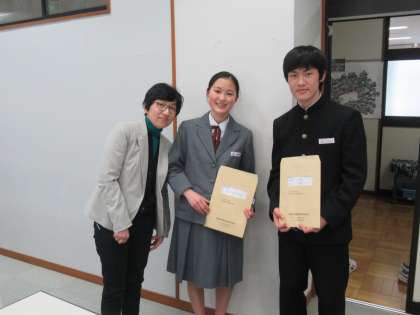 本日6時間目、3年生は私立高校の合格発表を行いました。発表は、各クラス別室で、一人一人に手渡しで行いました。写真は喜びの様子です。おめでとうございます!
