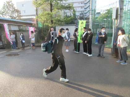 東門でのあいさつ運動の様子です。
