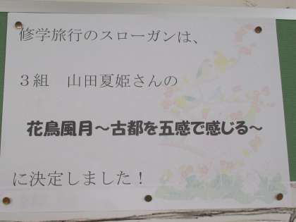 2年生は少し前に修学旅行のスローガンが決まっていましたが、表紙絵も決定しました。素敵な絵ですね。古都に思いを馳せて……。