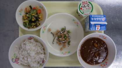 ハヤシライス 牛乳 大豆と小魚のからあげ 海藻サラダ