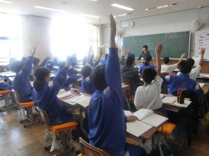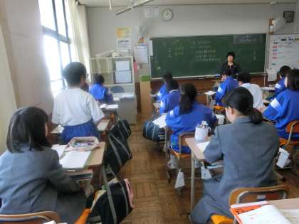 1年2組の数学の時間です。「+、−のついた数はどのように使われているのか?」という問いのもと、数直線上に表して考えていました。正の数と負の数の大小がはっきりと見えてきたようです。小学校時代は0と正の数の中で考えたことが、これからは負の数も加わり、数の世界が広がります。数の不思議や美しさを感じて楽しんでもらいたいです。