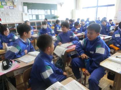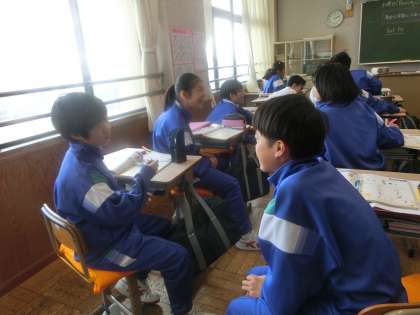 1年4組の英語の時間です。「身近な単語にふれよう!」という課題のもと学習していました。Do you like〜?を基本に、プラス1文を心掛けることで会話が広がることを心掛け、ペアの友達と会話を楽しんでいました。