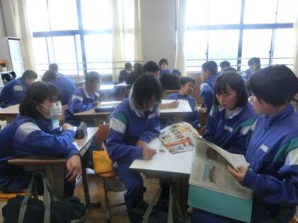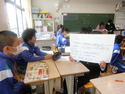 3年1組の総合の時間です。3年生は朝から学力・学習状況調査に取り組みました。6時間目は修学旅行の調べ学習をすることができ、リラックスしていました。1か月後が楽しみですね。