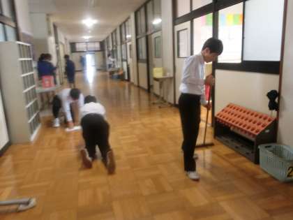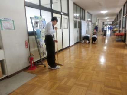 8時から朝の黙動清掃が始まりました。それぞれの持ち場に責任を持ち、働いています。手際がよく10分でとてもきれいになりました。「自分の役割に責任を持って行動する」キャリア・プランニング能力の1つと考えています。