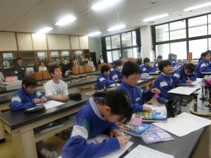 1年3組は理科の授業を行いました。「花のつくりの共通点と相違点は?」という問いのもと、ツツジの花を実際に分解し考察していました。