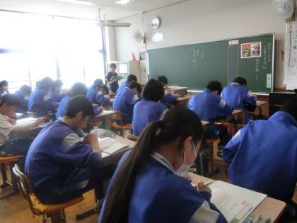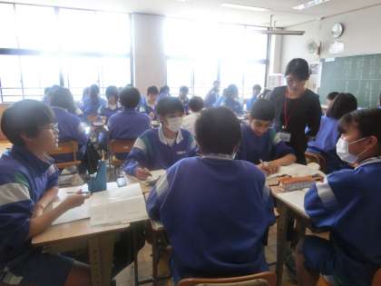 3年4組は国語の授業を行いました。『言葉の共有』について、私(岡本夏木さん)と彼はどんな人だろか?という問いのもと、本文から読み取り、グループで交流していました。