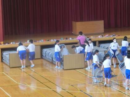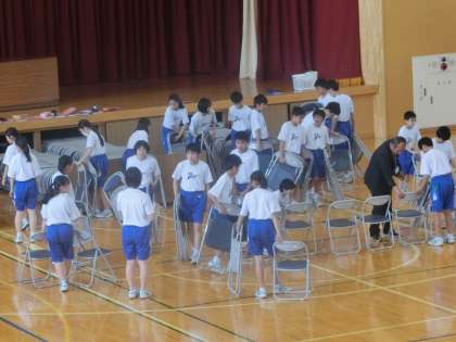 5時間目終了後、2年4組の皆さんがPTA総会の準備をしてくれました。あっという間にいすが並び、準備が整いました。ありがとうございました。