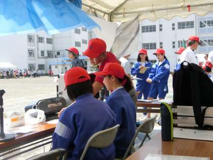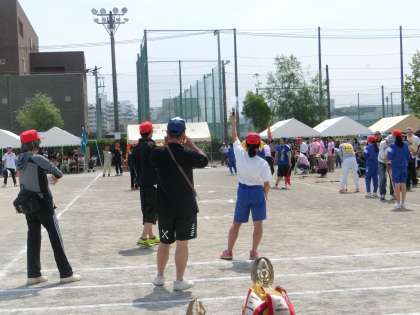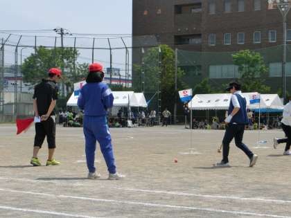 放送で「グラウンドゴルフゲーム」の紹介がされ、合図とともにゲームが始まりました。皆さんとても上手です。