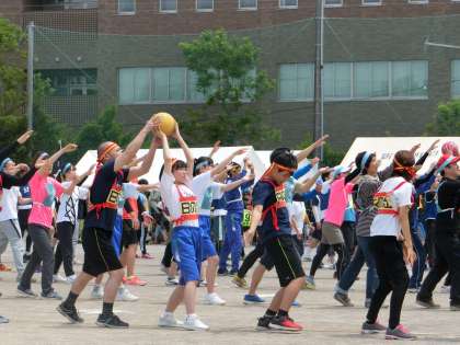 「メデシングボール」です。選手として、係として、大活躍中。いすに座っているのも大切な役目の1つです。