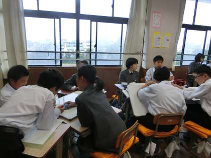 1年2組 国語の授業です。「風呂場の散髪」を読んで、岳の言葉に着目して考えていました。友達と交流することで、あらためて気付くこともあったようです。