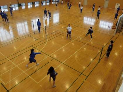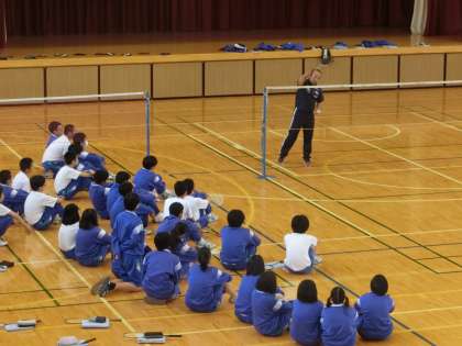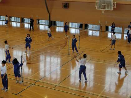 3年1組 体育の授業です。バドミントンをやっていました。効果的な動きについて考えたあと、実際にゲームが始まりました。今日はお互いの動きを見合い、アドバイスを送り、動きの改善に繋げていました。