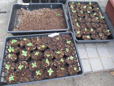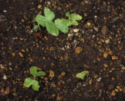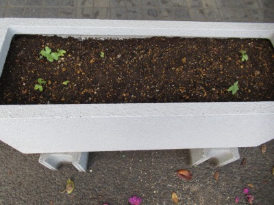 用務員の勝又さんが、種をまきをし、ある花を育てています。さて、何を育てているのでしょうか。1枚目の写真の葉は、見覚えがあるでしょう。双葉が大きなヒントです。そう、朝顔です。3枚目の写真、これは百日草です。