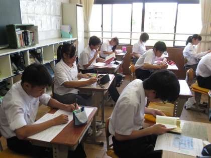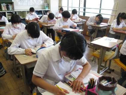 「自分の思いを伝える三行詩」に取り組んでいます。前時は、「我が家のルール、家族のきずな、命の大切さ」についての題材を集め、取捨選択したり、関連付けしたりしながら内容を決定しました。今日は、より効果的になるように詩に表していきました。