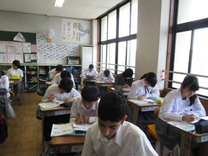 POWER−UP1のリスニングに取り組んでいました。出発前の機内で健太が客室乗務員に質問する場面のやりとりです。内容はしっかり聴き取れたでしょうか。