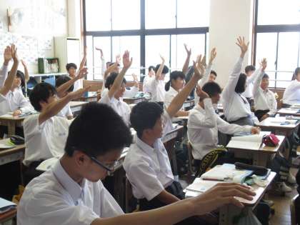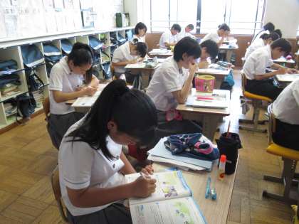 POWER−UP1のリスニングに取り組んでいました。出発前の機内で健太が客室乗務員に質問する場面のやりとりです。内容はしっかり聴き取れたでしょうか。