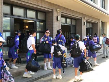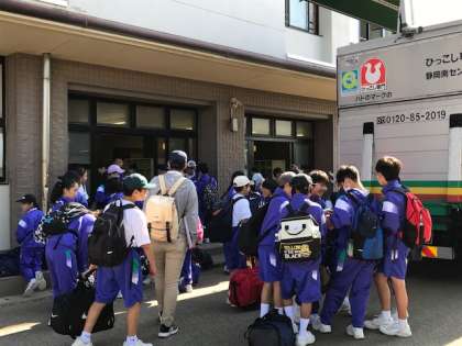 待ちに待ったふれあい教室の日です。荷物を積み込んでいます。