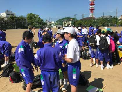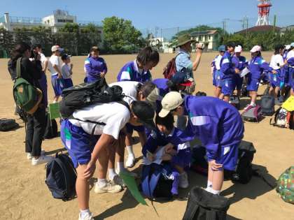 出発クイズを解いています。3人よれば文殊の知恵。頑張れ!