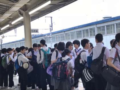 ホームで新幹線を待っています。