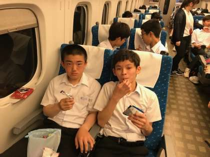 雨は降っています。新幹線の中は、引き続き盛り上がっています。