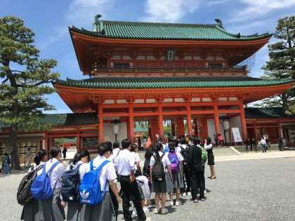 2組 平安神宮です。雨上がりのためでしょうか。とても美しいです。